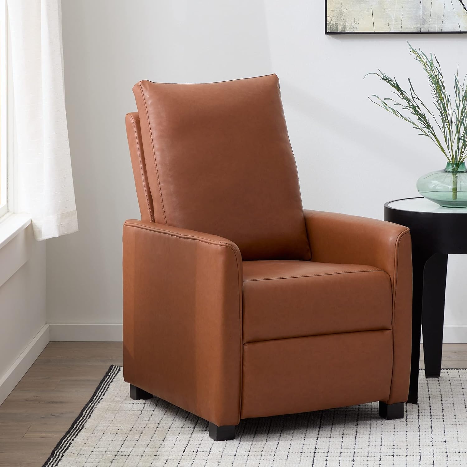 With its sleek mid-century modern design, the Edenbrook Adams Recliner adds a touch of elegance to any room. The round armrests and camel faux leather upholstery create a chic and sophisticated look. Whether your decor is contemporary or traditional, this recliner seamlessly fits in and enhances the overall aesthetic of your space.