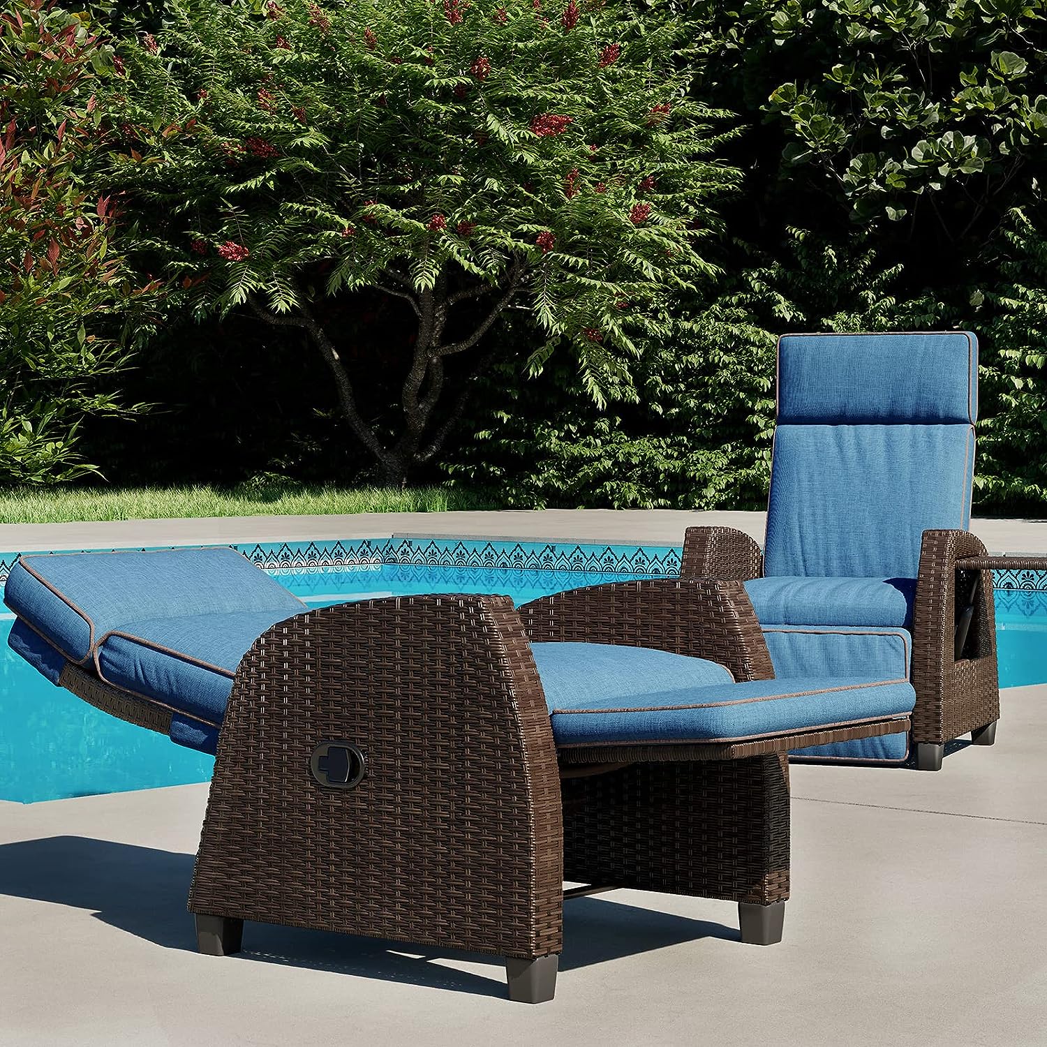 This recliner excels in terms of quality. It is constructed with premium materials, from the resilient rust-resistant powder-coated steel frame to the double-strand all-weather resin wicker. These materials are designed to withstand the rigors of outdoor use and offer exceptional durability.
