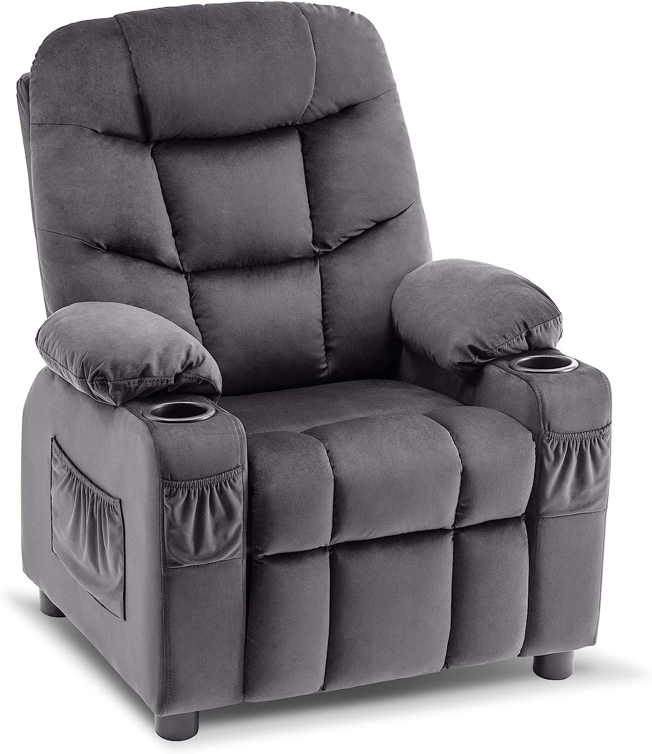 | Costzon Kids Velvet Recliner Chair | 3+ years | Fabric | Solid wood frame, adjustable backrest and footrest, cup holders and side pockets, ergonomic design |